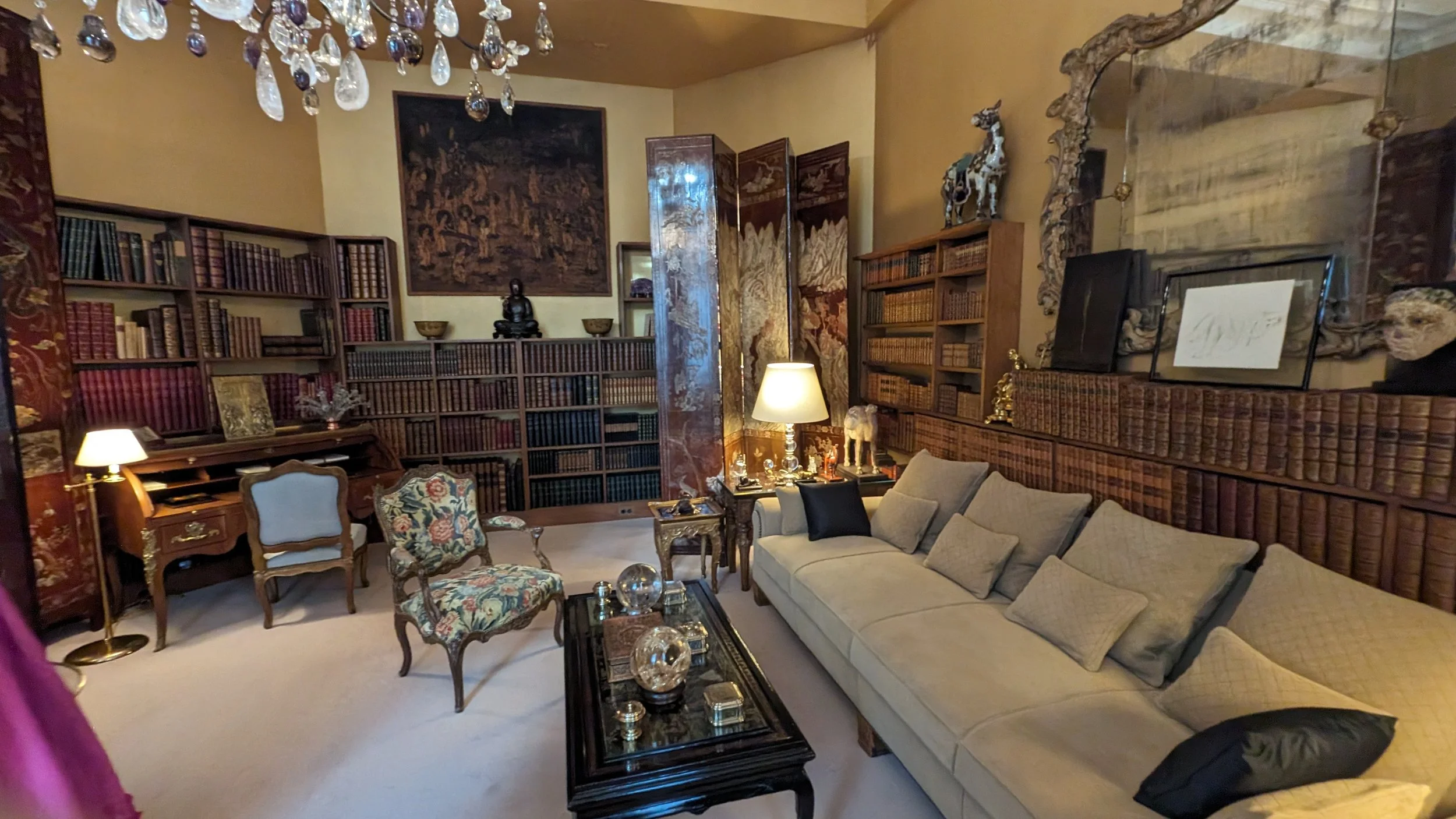 Below is a photograph which I took in November 2023 on a private tour of Gabrielle Bonheur ‘Coco’ Chanel’s home in Paris. Look at the room and you will see the Salvador Dali painting of a sheaf of wheat, but look again, the room is filled with literature. Chapter after chapter after chapter of the writen word. This pleases me.