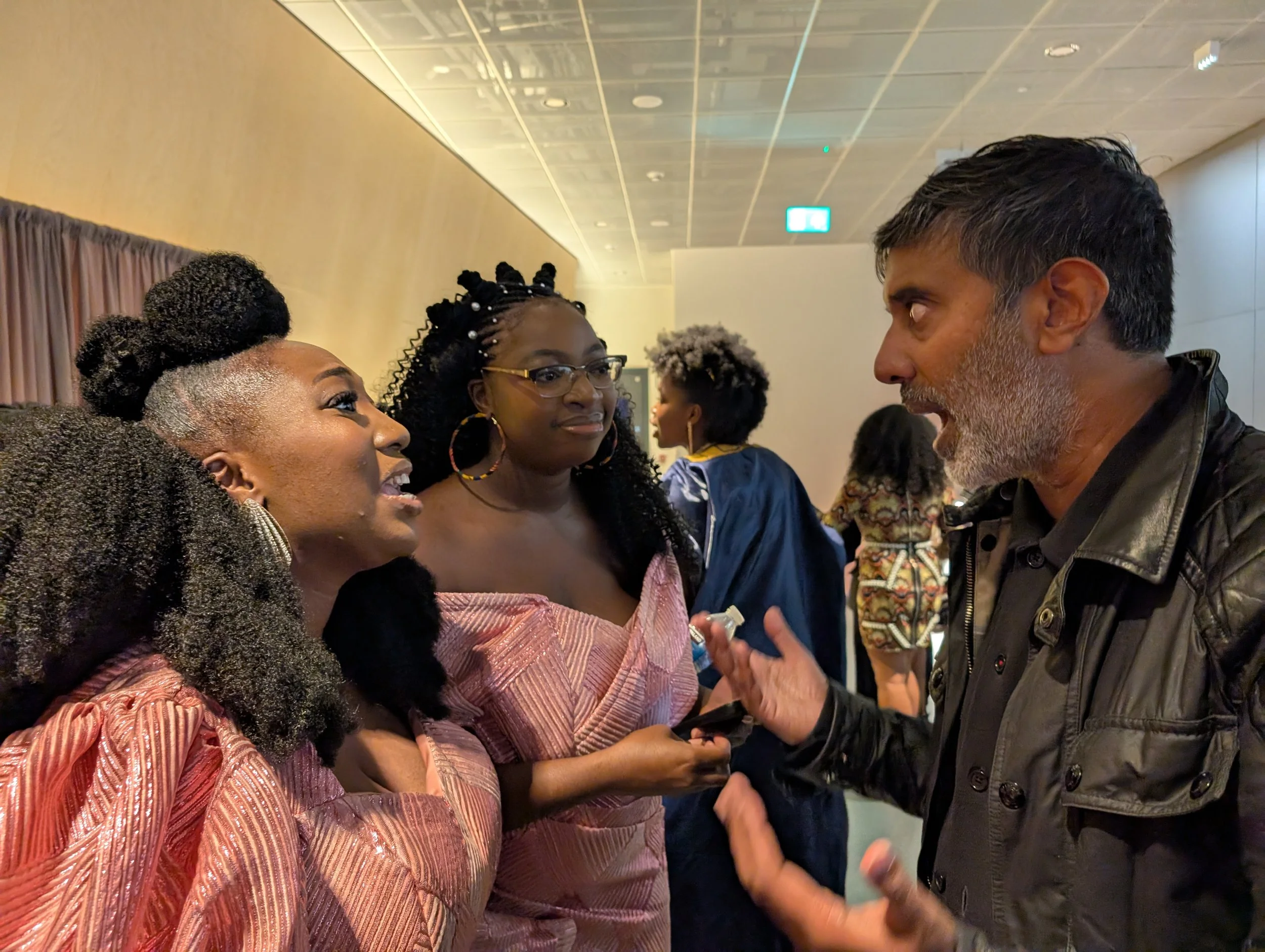 Nihal Arthanayake in conversation with Ronke and Adeola.