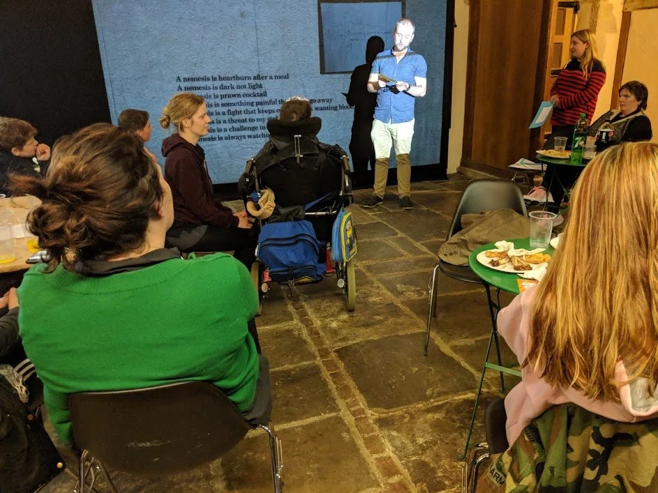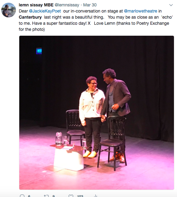 I've been Canterbury's Poet Laureate for twelve months of a thirty six month residency. Thanks to Wise Words Festival and The Marlowe Theatre. The laureateship started in May 2017 with Warrior Poets, an exhibition of poems by young people in care. This artwork for the exhibition is by Canterbury artist Greg Stobbs. This artwork is called Many Homes.For Warrior Poets we transformed The Marlowe Studio theatre into an exhibition space. This song is a poem called STRONG by The Warrior Poets transformed into song by Canterbury musician Richard Navarro. The video covers the exhibition.[embed]https://youtu.be/DpWn3w3H7Cc[/embed]This happened a few weeks ago. Onwards then to a series of talks curated by myself at The Marlowe Studio. On May 6th 2017 The Forgiveness Project came to the Marlowe. I interviewed Jacob Dunne. He caused the death of a man with one punch and was convicted for it. I also interviewed the mother of the boy who died. Two incredible people.On 6th December 2017 I held an in-conversation at The Marlowe with rising star comedian Sophie Willan exploring her incredible life story & the resilience of those who are care experienced. .On 29th March 2018 an in Conversation with the Scottish Makar ( poet Laureate of Scotland) Jackie Kay exploring resilience and the search for birth family and her incredible story. Jackie Kay has performed all over the world and loved this event in particular. On 5 Dec 17 I performed Something Dark, my one man play, at Marlowe Studio Theatre."Although this show at The Marlowe‘s Studio is ‘just’ a reading, not a performance it’s engaging, atmospheric and compelling. Honest and compassionate, he reveals his soul, and in the process, reveals some of the truths about family.” Francesca Baker.On 30th March 18 I performed 'Origins' a comic and poetic look at orphans and foster children in popular culture, based on my Radio 4 series, Origin Stories. The Conversations and performances were intimate and powerful and all themed on the care system.On 9 June 18 I performed A poem for Canterbury 'Cantuarian' accompanied by the Canterbury Cathedral choristers under the direction of David Flood. This concert was the first such collaboration between the Cathedral and Marlowe Theatre. Cantuarian, is told from the perspective of the River Stour. The river a constant presence within the city across the ages, a silent witness to the city, its inhabitants, its history. An audience of 450 filled the knave. It was a diverse mix of poetry lovers, the Cathedral audience, people who know my work, as well as teachers we had worked with and the family and friends of the other performers. School choirs, community choirs all sang songsin celerbation of The River. Part of The Canterbury Cathedral's One Voice campaign. I have been mentoring four young poets. They wrote their poems in celebration of The River Stour which flows through Canterbury. In rehearsal they found their stance.And they rehearsed like champions. And when the audience came they performed like champions.As the concert came to a close narrated by Andrew Dawson an invited audience walked through the city to the Friars Bridge by Marlowe Theatre. Thanks to a major gift from a Marlowe Donor a permanent installation of Cantuarian was launched. Thanks to projectionist, Howard Griffin, from the University of Kent, Marlowe Theatre and Wise Words. Can you see the Moon under The Bridge. It's a permanent addition to the magic of CanterburyCanterbury is a beautiful Canvas for Poetry: I wrote four poems that reflect the city across time and place. The Citizens of Canterbury made this video of Cantuarian.Marlowe is a city of Coffee Houses. It seemed right to write a poetry series for them. I wrote five Morning Tweet poems for five coffee houses: Water Lane, Waterstones, Lily’s, Boho and The Marlowe Green Room. They will be erected in the next year.The innaugral BBC arts programme Dominic King Show featured The Laureatship in Water Lane Coffee Shop.An impromptu reading on The High Street Mentorship and training and young people in care in schools: From March to April 2018 six young poets from Wise Words (Rough-Cut Collective) spent three days, supported by poetry therapist Victoria Field,Marlowe Literary Associate James Baldwin and me, to gain skills and processes to upport them delivering workshops for young people who have lived within the care system. It was a success. They delivered a five week in-school poetry programme for 26 looked after children from 3 schools across the District. The project culminated in a poetry open mic hosted with the Marlowe’s KIT. Four students went up two sets in English as a direct result of this project.“I loved every minute of it. It helped me get rid of my mixed emotions, feel fresh and free. I wish we could do this every week.” (student)On 8th JAN 2018 I delivered a Local Writer Development | Masterclass: It was the first public workshop at The Kit. This was for 25 local writers and, inspired by Lemn’s own process of writing his poems for Canterbury.The University of Kent in Canterbury asked me to read at The Gulbenkian Cafe on 28th February 2018. The poets were so good at The Cathedral event that on July 18 they featured on Dominic Kings BBC Radio arts show In May 2017 at Wisewords Festival (pic below) I inspired a group of Caterbury residents to put on the first Christmas Dinner in Canterbury for 20 Care Leavers. They set up a facebook page & met again in October and fortnightly until December 25th. Within 10 weeks thesteering group found a venue, chef, volunteers, presents, funds, food, presents, transport, volunteers, funds and guests. Now THAT is community action. It was held at the stunning Conquest House. This video painsts the picture.O April 18 I judged a poetry competition for The Kentish Gazette.A small selection of press and radio.Canterbury gets a poet laureateCanterbury Poet Laureate Plans ChristmasCanterbury’s Poet Laureate wins damages for abuse suffered in